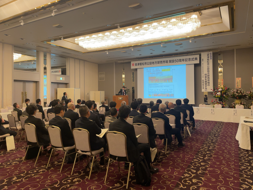 記念式典に先立ち、福島大学食農学類准教授 則藤孝志先生をお招きし「会津若松市公設地方卸売市場の将来を展望する」をテーマとした記念講演が開催され、今後の市場運営における貴重な学びを得る機会となりました。
