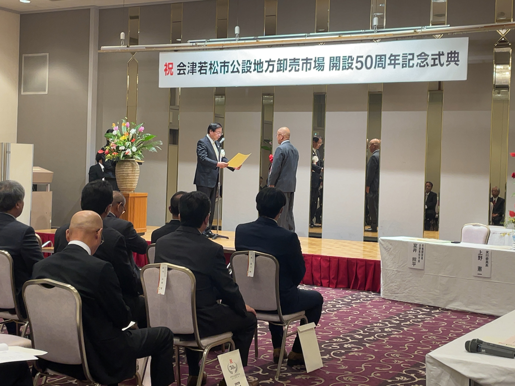 10月21日、会津若松市公設地方卸売市場開設50周年を記念して式典並びに祝賀会を「会津若松ワシントンホテル」にて開催いたしました。